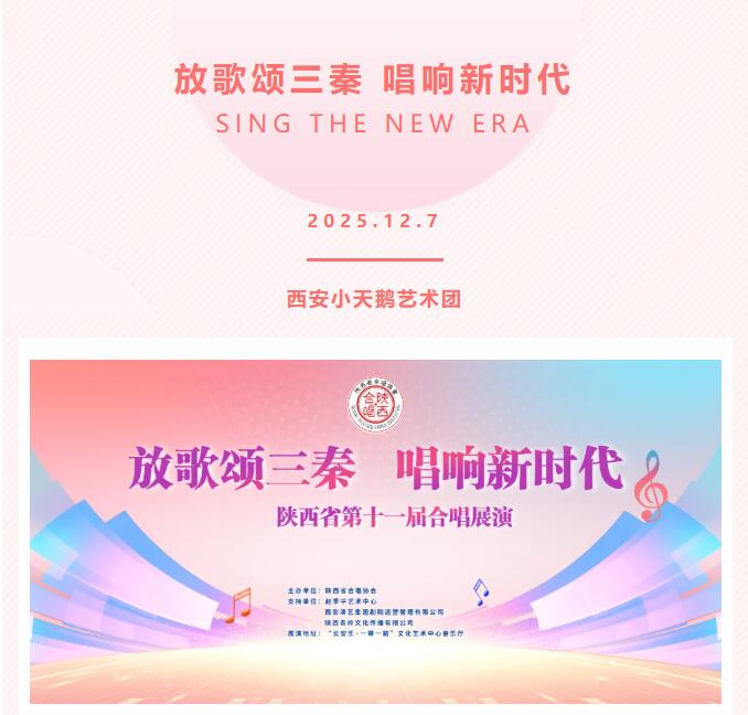 放歌颂三秦,唱响新时代。12月6日至7日,陕西省第十一届合唱展演在"长安乐·一带一路"文化艺术中心音乐厅隆重举行。来自全省各地的75支优秀合唱团队齐聚一堂,共襄艺术盛举。西安小天鹅艺术团“天鹅合唱团”倾情演绎《在灿烂阳光下》,以深情的歌声和专业的表现,赢得全场热烈掌声。
